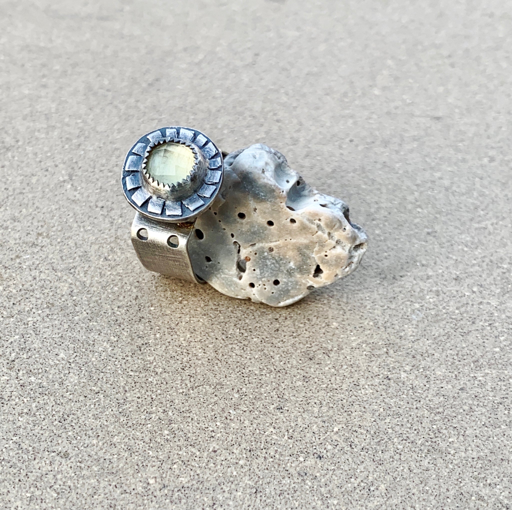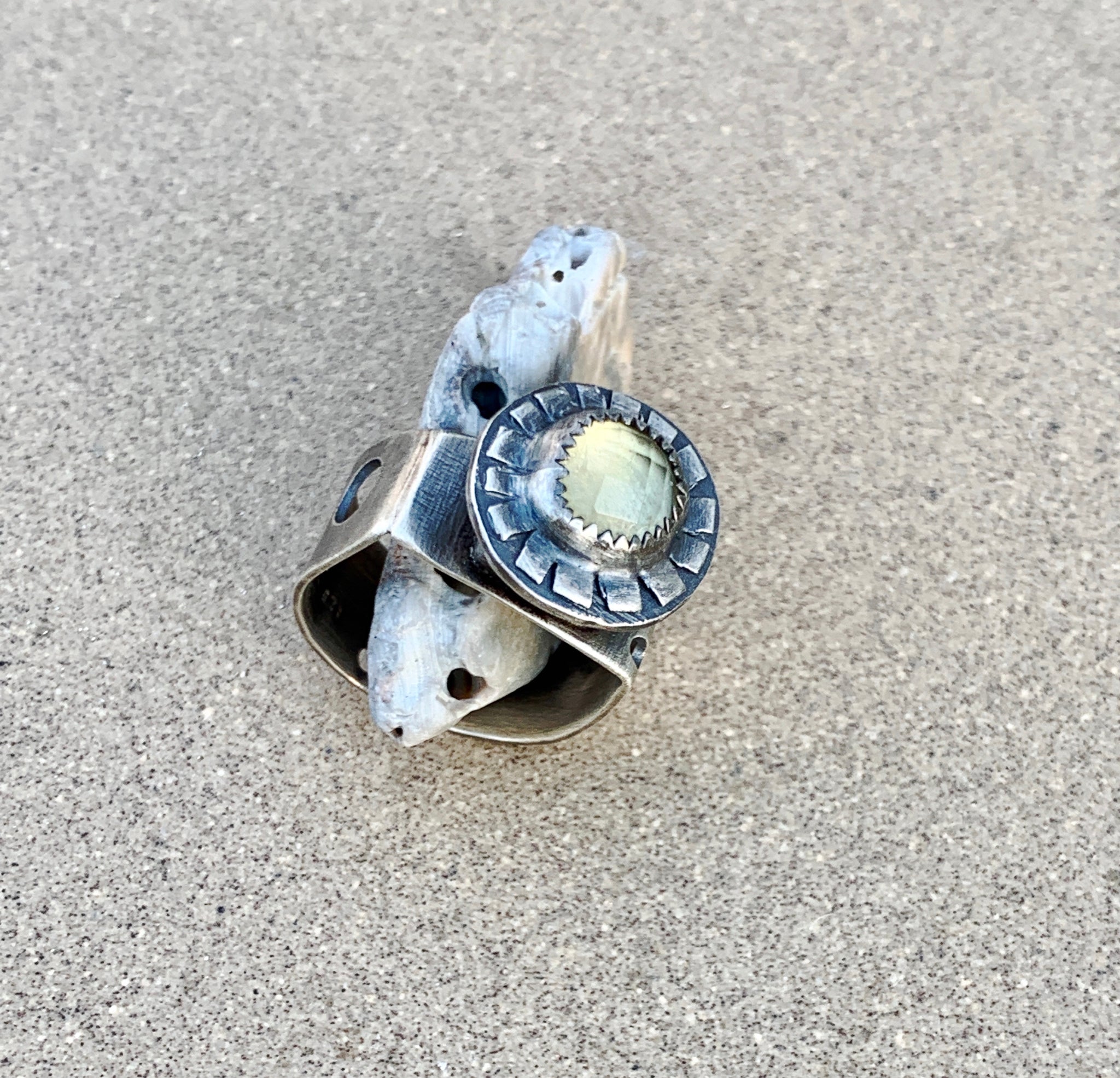 Sterling Silver w/ Rose Cut Lemon Quartz Sun Ring