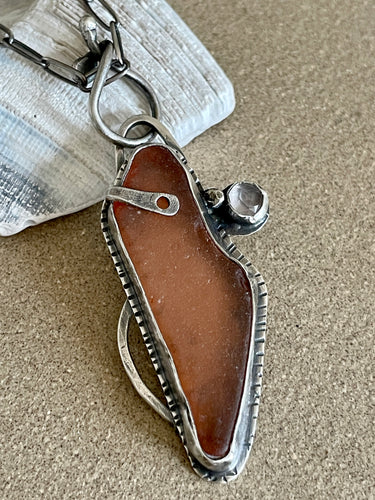 Sterling Silver Brown Found Sea Glass Pendant w/ Rolo Chain