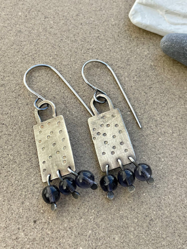 Stamped Sterling Silver w/ Amethyst Bead Earrings