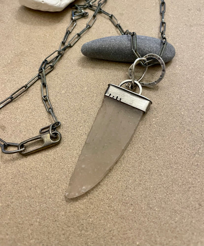 Sterling Silver Pendant Ice Blue Sea Glass w Sterling Chain