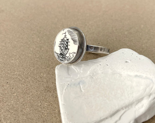 Vintage Carved Scrimshaw Ring