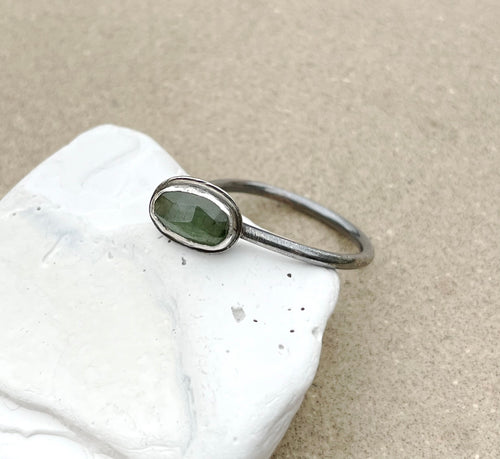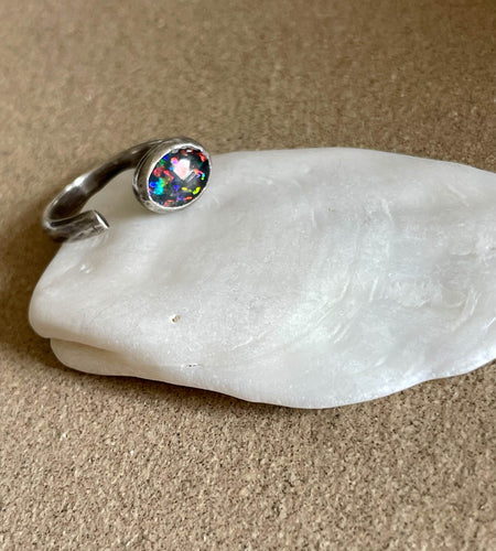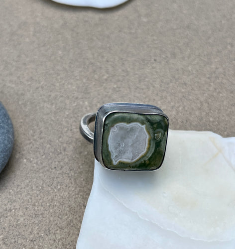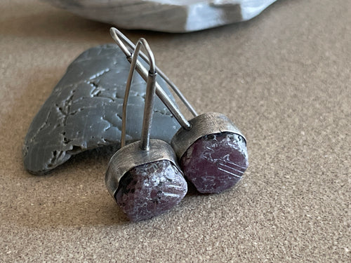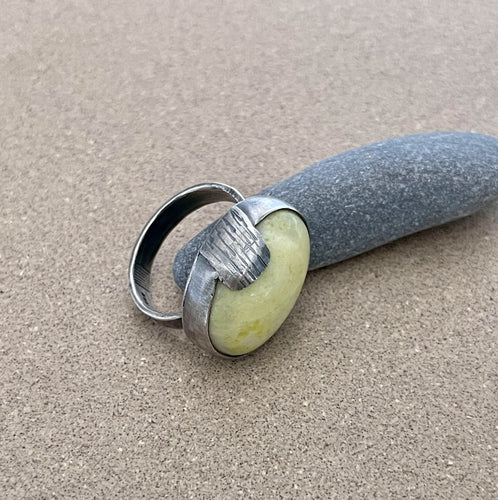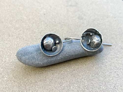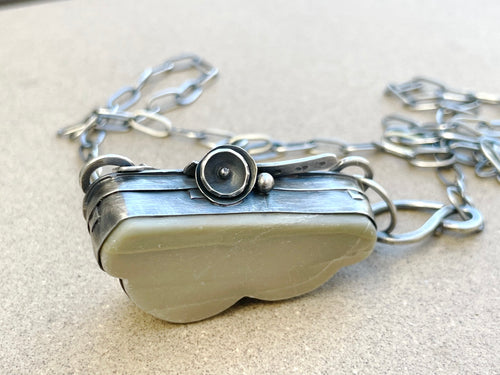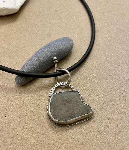Repurposed Sterling Silver Grey Found Rock Pendant on Black Rubber
