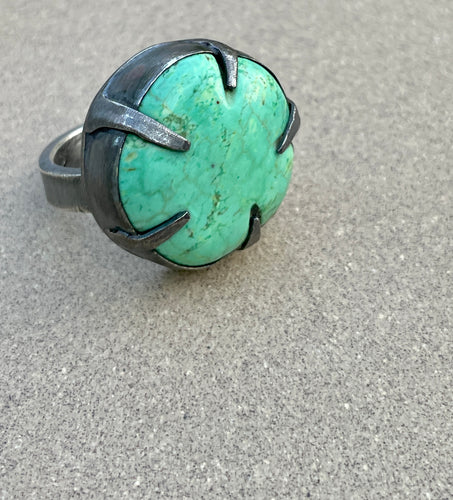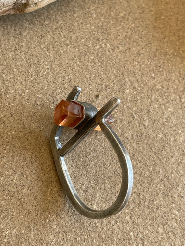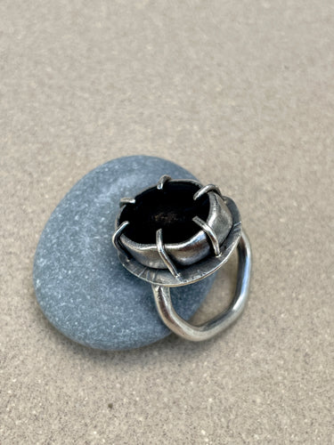 Sterling Silver Kidney Bean Rock w/ Round Agate Adjustable Ring