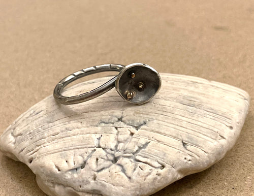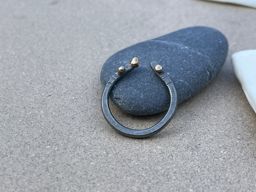 Sterling Silver Hammered 14K Gold Dot Open Ring