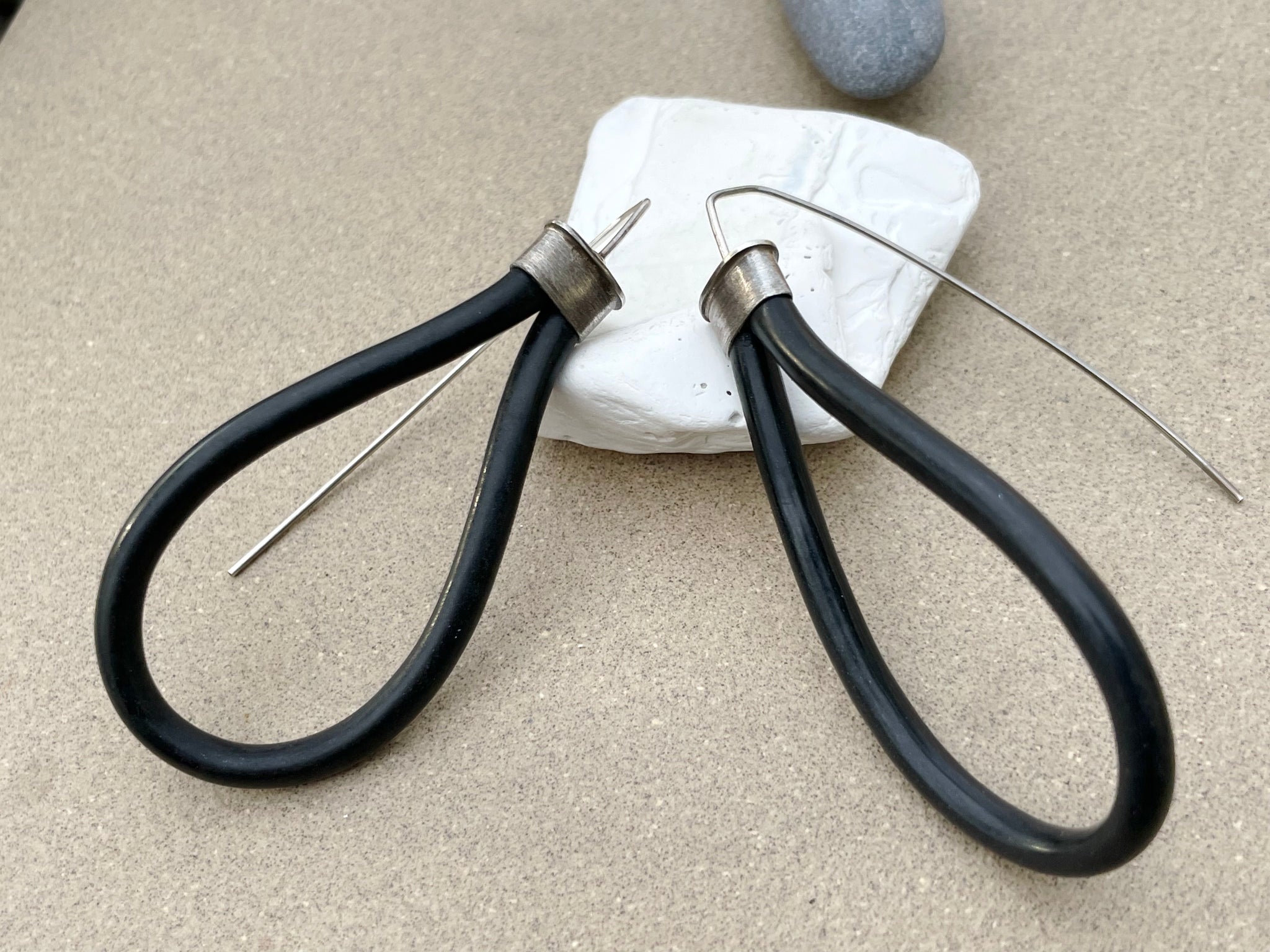 Repurposed Vintage Black Telephone Cord Sterling Teardrop Earrings